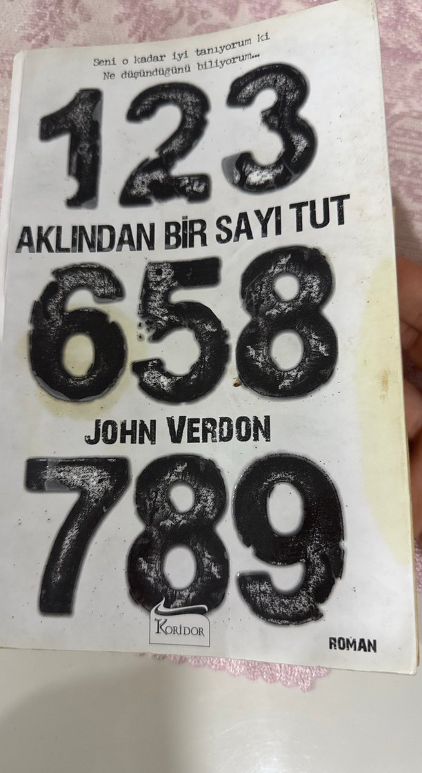John Verdon'un 'Aklından Bir Sayı Tut' adlı romanı, kapakta 123, 658 ve 789 sayılarıyla. Koridor yayınevi tarafından basılmış. 1 sayfasında biraz yırtık var fotoğrafa koydum