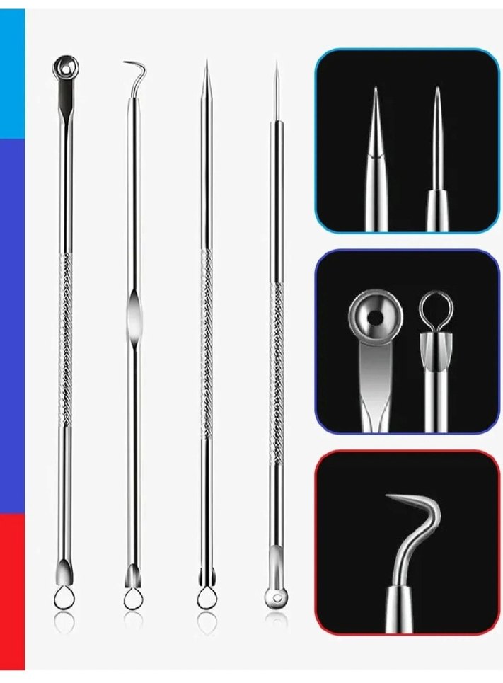 AkneSiyah NoktaKomedon Temizleyici 4lü Set Paslanmaz Çelik Gümüş