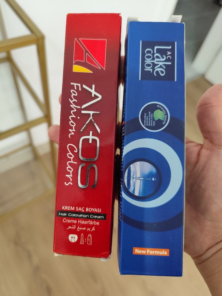 Akos Fashion Colors ve Lake Color krem saç boyaları, kolay uygulama ve canlı renkler sunar. çok az kullanıldı ikili fiyat