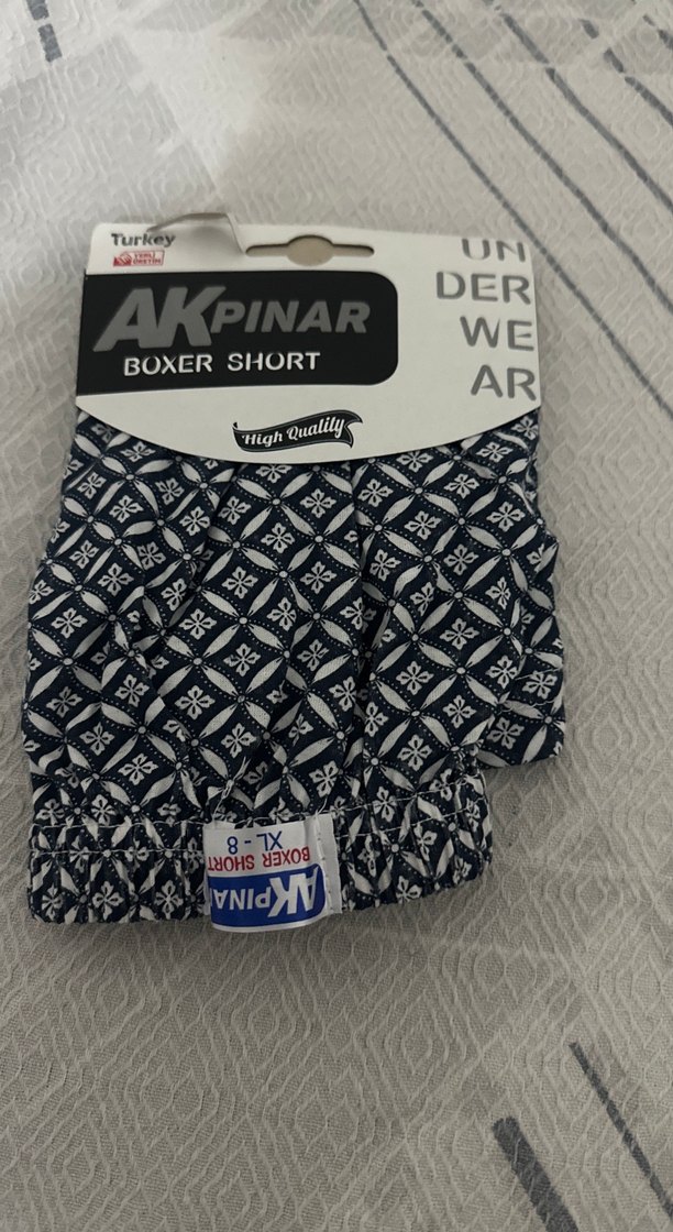 AKPINAR markalı, kısa boy, desenli, gri renkli, erkek boxer. Türkiye'de üretilmiş, kaliteli kumaşa sahip, dar kesim model.