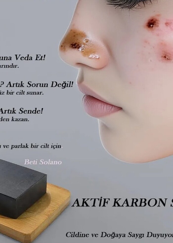 Aktif Karbon Sabunu: Derinlemesine Temizlik ve Arındırıcı Bakım Gözeneklerinize Nefes Aldırın! Cildiniz gün içinde hava kirliliği, makyaj kalıntıları ve fazla yağ nedeniyle tıkanabilir. Beti Solano Aktif Karbon Sabunu, içeriğindeki aktif karbon ile cildi derinlemesine temizler, fazla yağı dengeler ve siyah nokta & akne oluşumunu önlemeye yardımcı olur.