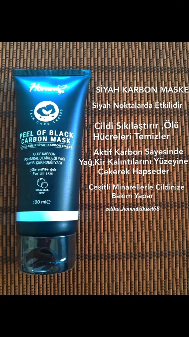 Aktif karbon içeren siyah maske cildi sıkılaştırır, ölü hücreleri temizler ve yağ-kir kalıntılarını çeker. Çeşitli minerallerle cilde bakım yapar. Tüm cilt tiplerine uygun.