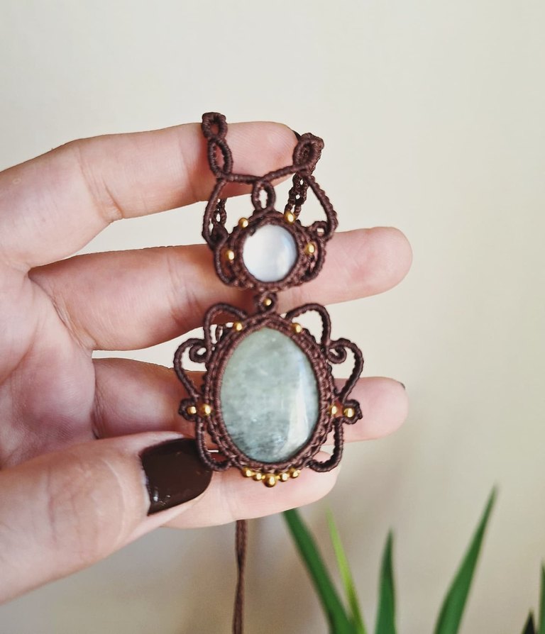 Akuamarin ve aytaşı ile tasarlanmış kolye #aquamarine #moonstone #aytaşı #macrame #makromekolye #elyapımı #bohem #keşfet #tasarım #balıkburcu #yengeçburcu #cancer #pisces #çakrakolye #doğaltaştakı