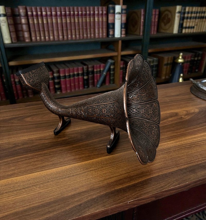 ✨ Döküm Gövdeli, Bakır Rengi Akustik Gramofon – Dekoratif Koleksiyon Parçası Klasik tasarımın modern bir yorumunu taşıyan, döküm gövdeli ve bakır rengi bu akustik gramofon; estetik formu ve detaylı yüzey işlemeleriyle dikkat çeken özel bir dekor ürünüdür. El işçiliğini andıran ince motifleri ve zamansız rengi sayesinde hem vintage hem de modern ortamlara kolayca uyum sağlar. Masa üzerinde sergilenebilmesi için tasarlanmış güçlü ayakları sayesinde dekoratif duruşu oldukça etkileyicidir. Ürün Özellikleri: • Döküm gövde • Bakır rengi yüzey • Akustik gramofon formu • İnce detaylı işlemeler • Masaüstü dekorasyon için ideal • Koleksiyonluk, fotoğraf/film çekimlerinde aksesuar olarak kullanılabilir Ev dekoruna nostaljik ve karakterli bir dokunuş katmak isteyenler için mükemmel bir seçim. Vintage severler, koleksiyonerler ve özel dekor arayışında olanlar için benzersiz bir parça.