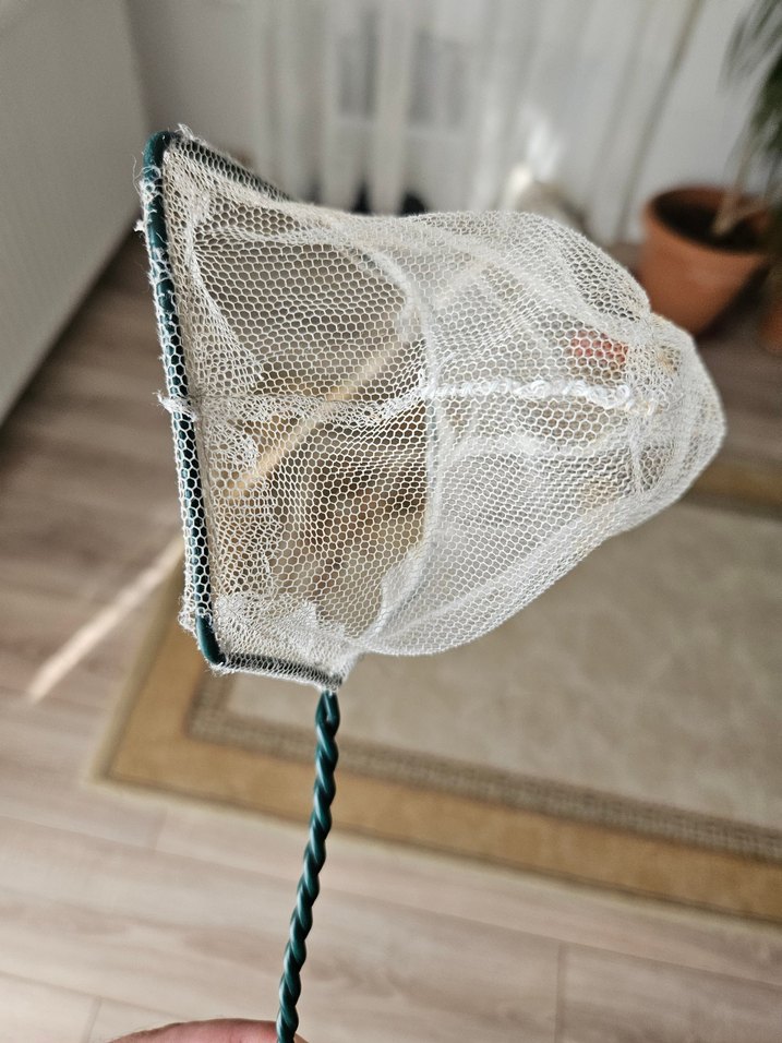 Beyaz renkte, demir saplı balıkları aktarmak tasarlanmış ince ağ file.Akvaryum ve fanus içindir