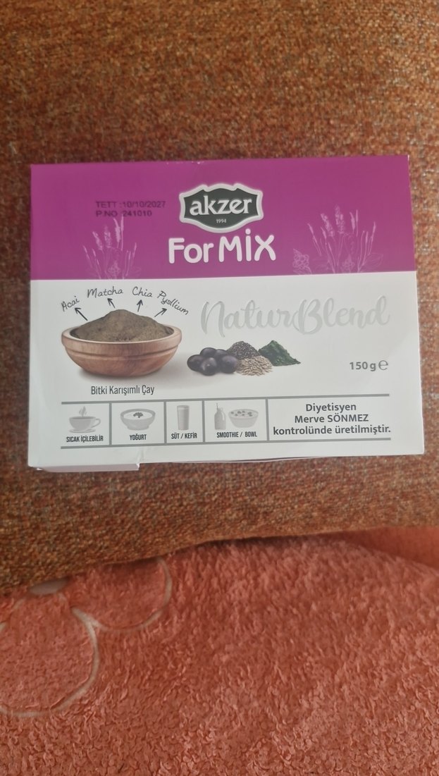 Akzer ForMix bitki karışımlı toz çay, acai, matcha, chia ve psyllium içerir. Diyetisyen kontrolünde üretilmiştir, su, yoğurt, süt veya smoothie ile karıştırılabilir. hiç kullanılmadı bu paket 3 paket almıştım 2 çi pakete sonuç harika