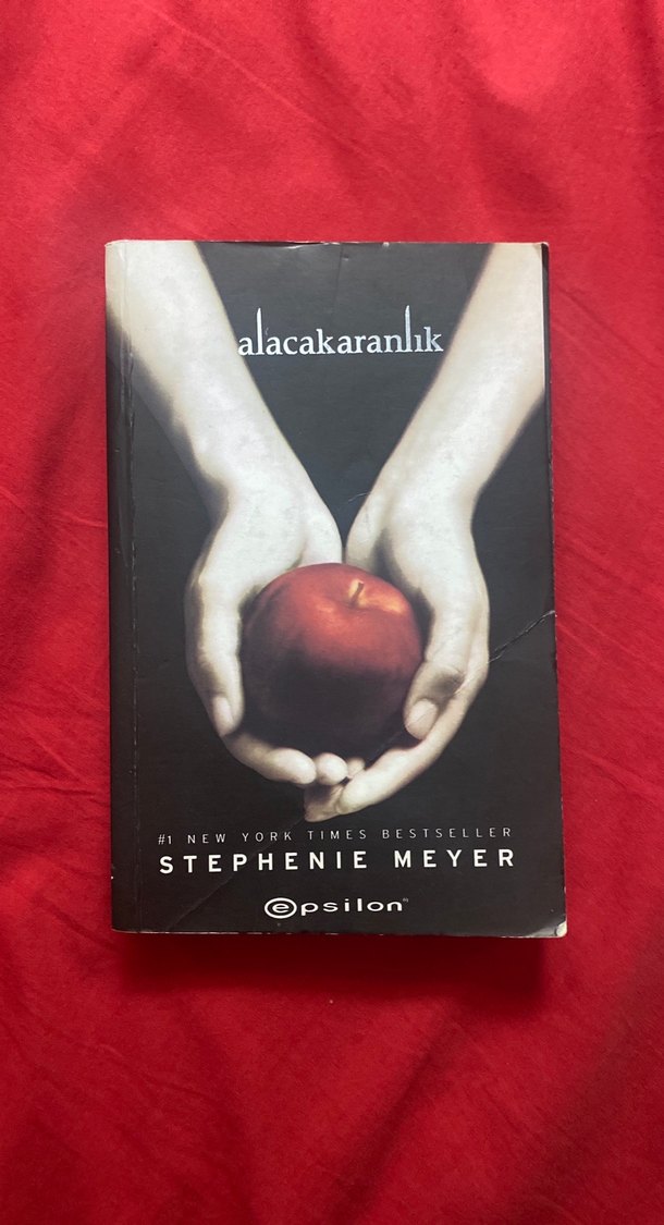 Stephenie Meyer'in 'Alacakaranlık' adlı romanı, Epsilon tarafından yayımlanmış, ellerde tutulan elma simgesiyle dikkat çeken çok satan bir hikayedir. Kitabın kapağında buruşukluk var. Elimden çıksın diye satıyorum teklif verebilirsiniz.
