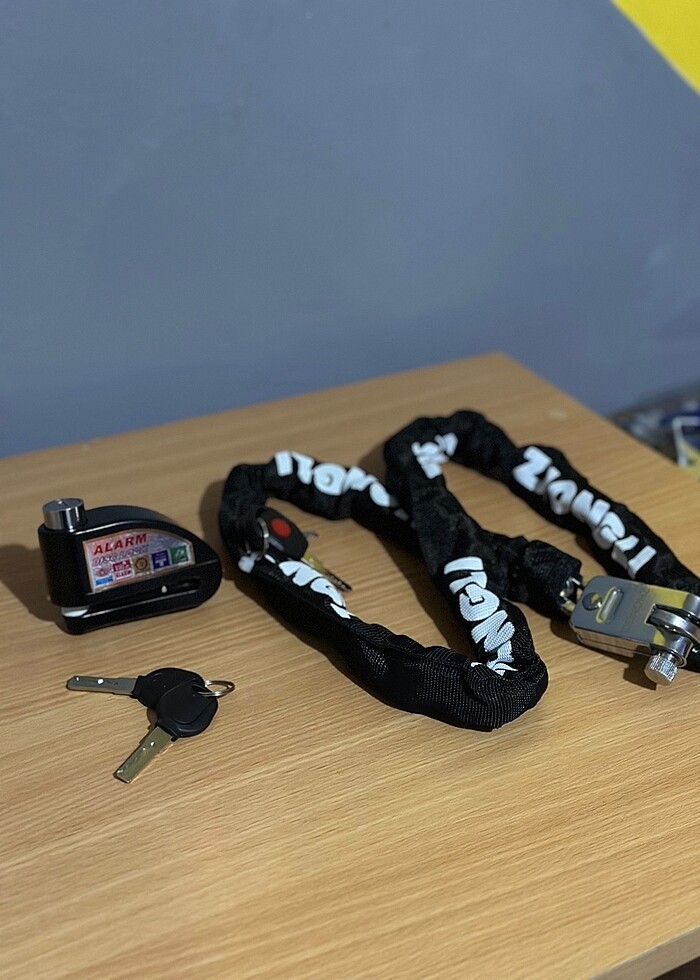 ALARMLI DİSK KİLİDİ VE ZİNCİR SCOOTER MOTOSİKLET ZİNCİRİ DEMİR K