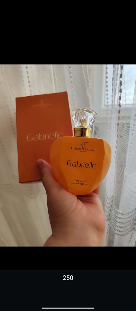 Alberto Taccini Gabrielle kadın parfümü, 100 ml şişede, zarif tasarıma sahip. Eau de parfum, belirgin aromasıyla öne çıkar.