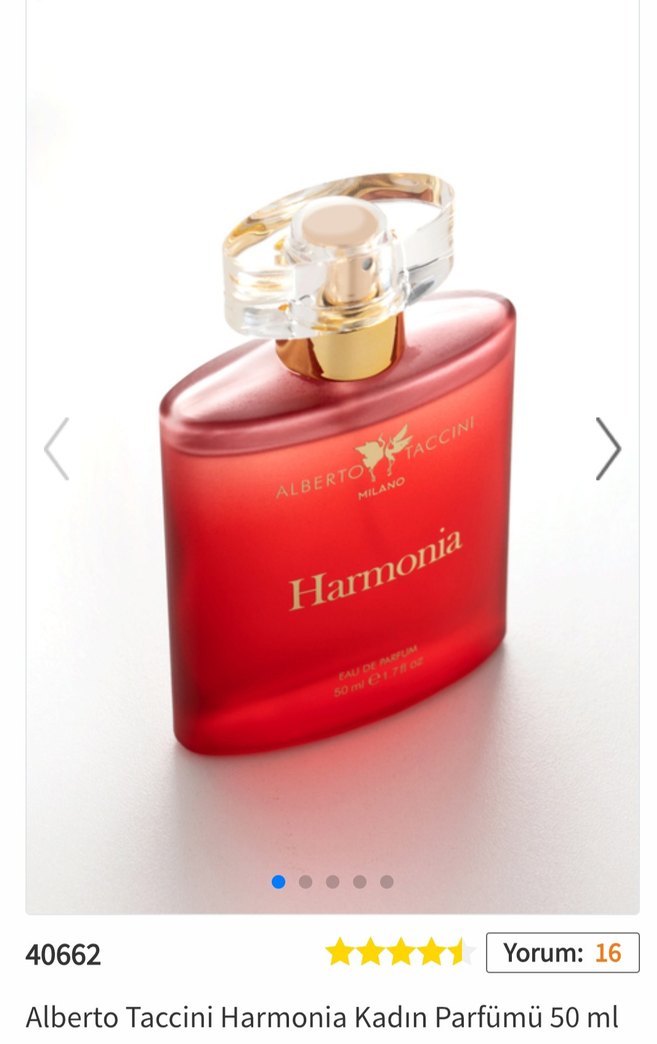 Alberto Taccini Harmonia Kadın Parfümü 50 ml 50 ml şişede ve şık kırmızı tasarıma sahiptir. Dengeli ve uyumlu bir koku sunar.
