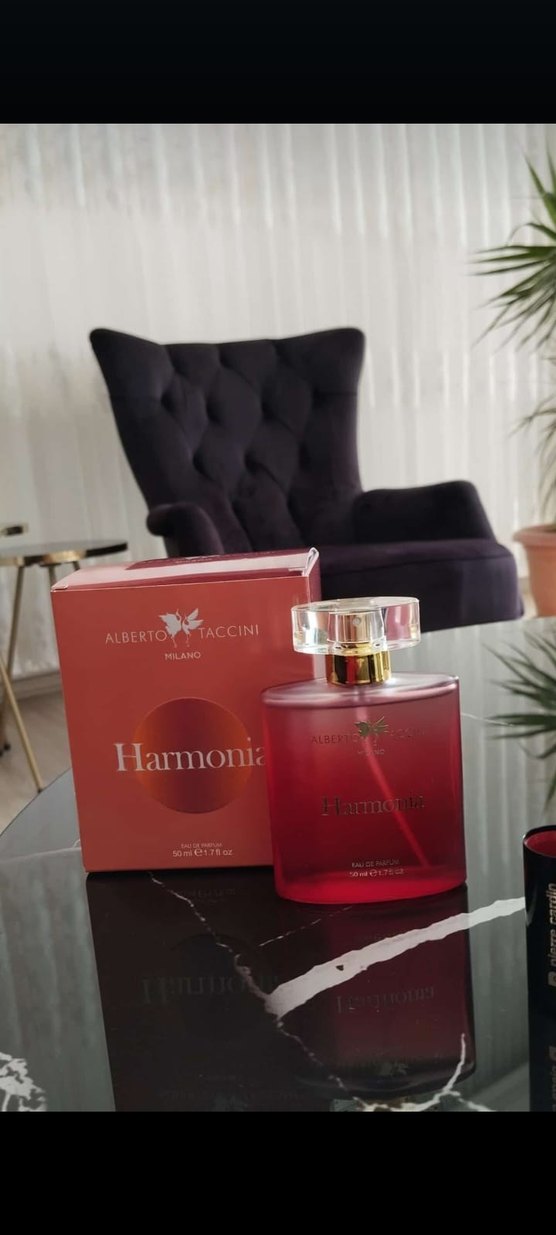 Alberto Taccini Harmonia, 50 ml kırmızı şişede kadın parfümü olarak sunulur. Şeffaf kapaklı ve uyumlu kokuya sahiptir.