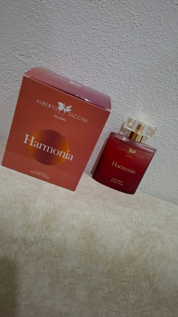 Alberto Taccini Harmonia, 50 ml şişede sunulan zengin ve şık kokulu kadın parfümüdür. Koyu kırmızı ve altın detaylı kutusu ile dikkat çeker.