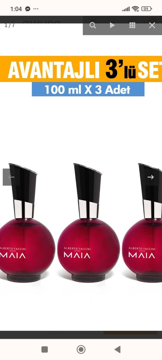 Alberto Taccini Maia kadın parfümünden 3 adet 100 ml şişe seti, kırmızı şişeleri siyah kapaklarla tamamlanmıştır.