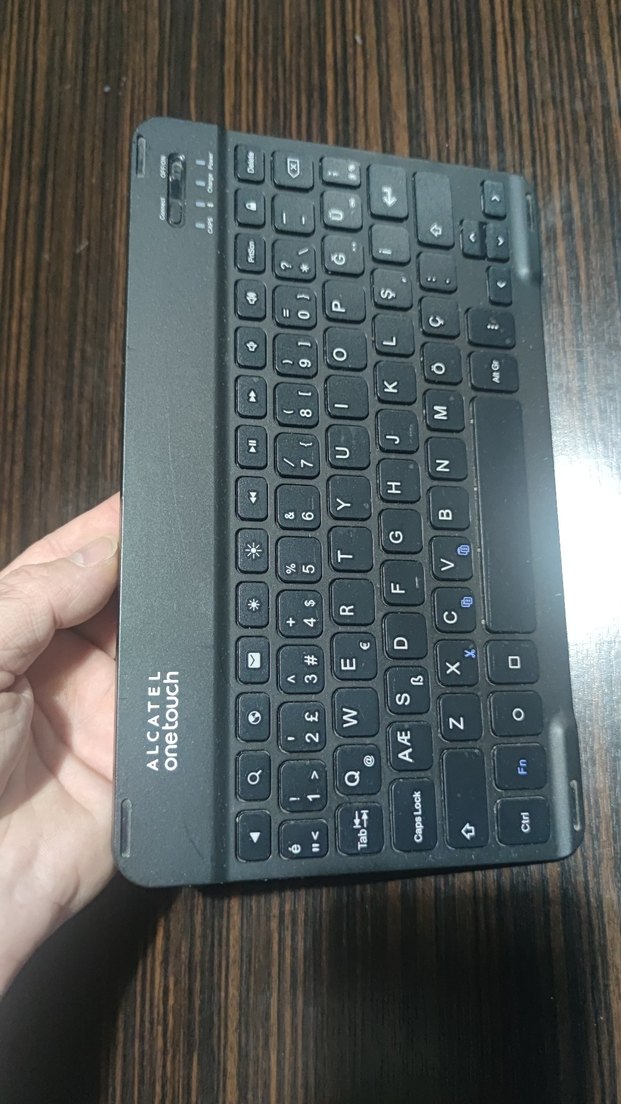 Orijinal Alcatel OneTouch marka Bluetoothlu mini klavye bilgisayar, cep telefonu, tablet Bluetoothlu tüm cihazlarla uyumludur..2.el temiz kullanılmış sorunsuz çalışıyor USB şarjlı, normal kullanımda şarjı çok uzun gidiyor yanında şarj kablosu verilecektir...siyah renk