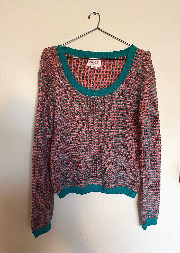 Alcott Napoli mağazasından satın alınan duochrome iki renkli ışıltılı örme kazak. Işıltılı çok az baskın değil.