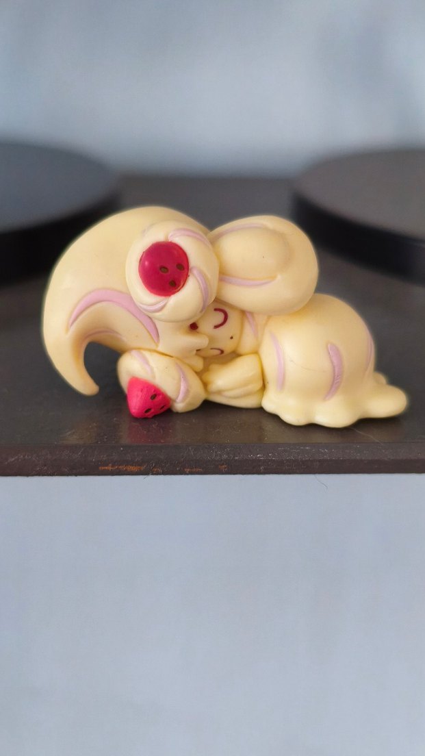 Beyaz renkli ve pastel tonlarda tasarlanmış, rahat pozisyonda sevimli bir karakteri gösteren pokemon figürü