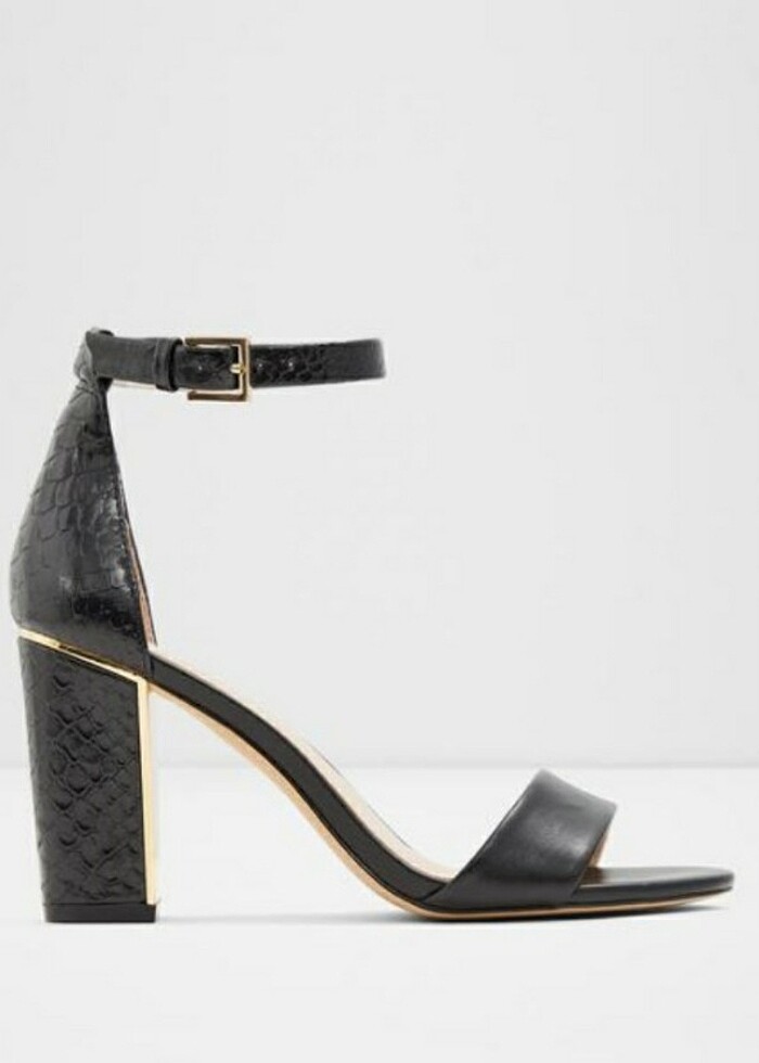 - Aldo siyah ayakkabı kalın topuklu altınlı,yeni kullanılmadı,kartonunda gönderilecektir, - 38/5 numara - 100% deri, - Topuk yüksekliği: 8 cm.