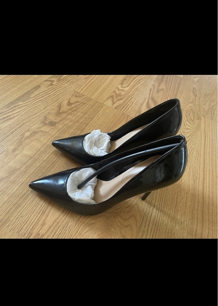 Siyah cilalı vernik ayakkabı, bir kez kullanıldı, sağlıklı. Ayakkabının içindeki deri uzun süre kullanılmadığı için iki yerde çürük var Size 37,5