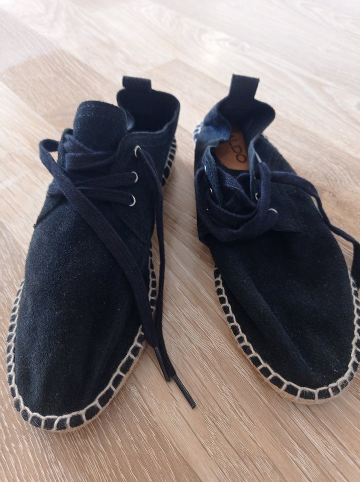 Siyah süet malzemeden yapılmış, bağcıklı espadril. Bohem tarzı ve günlük kullanıma uygun rahat tasarım. Desensiz ve şık. orjinal İspanya dan alınmıştır