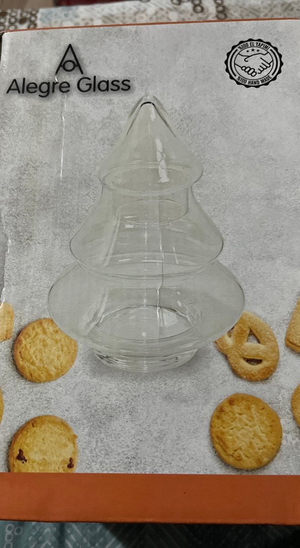 Alegre Glass şeffaf, ağaç şeklinde cam kutu, küçük eşyalar veya atıştırmalıklar için uygundur. Hiç kullanılmadı tertemiz