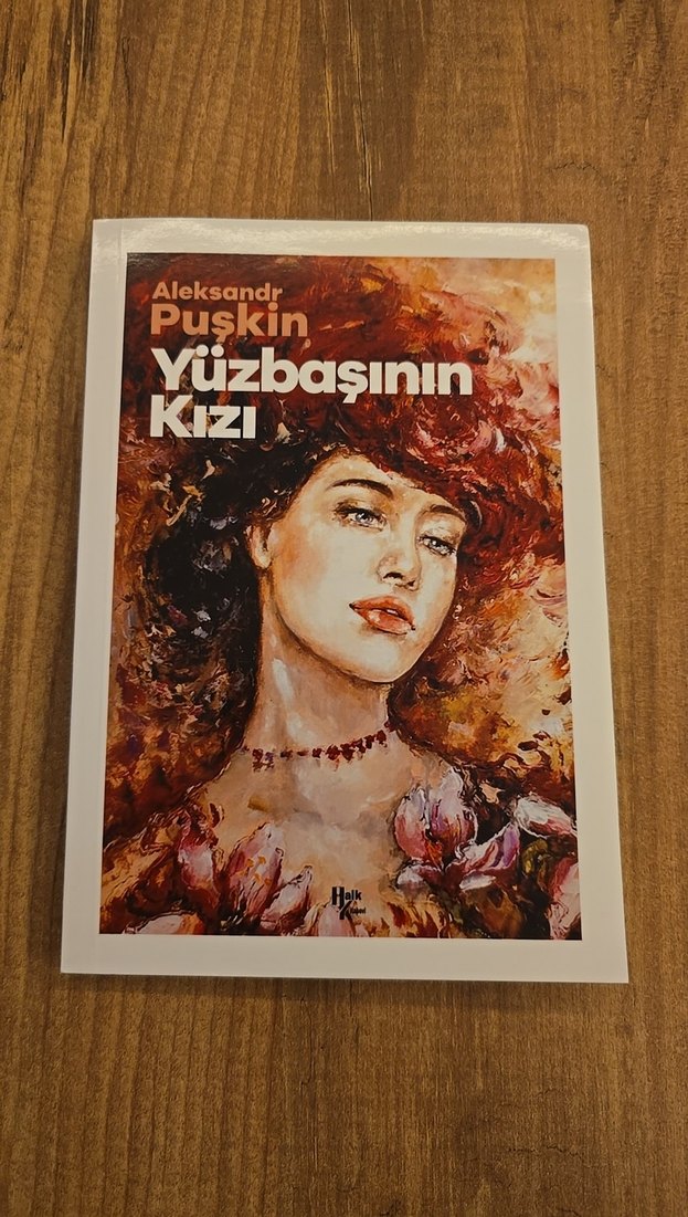Aleksandr Puşkin'in "Yüzbaşının Kızı" adlı romanının kapağında, hikayenin tarihi ve romantik temalarını yansıtan detaylı bir portre yer alıyor.
