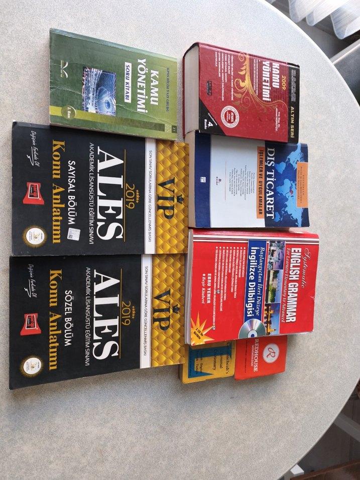 ALES ve Kamu Yönetimi, Dış Ticaret , İngilizce konularını içeren detaylı konu anlatımlı kaynaklar.Bazıları hiç okunmamıştır. Resimlerde iç sayfaları var, yepyenidir.Fiyat bir adet için, toplu olarak alınırsa fiyat çok daha uygun olacaktır.