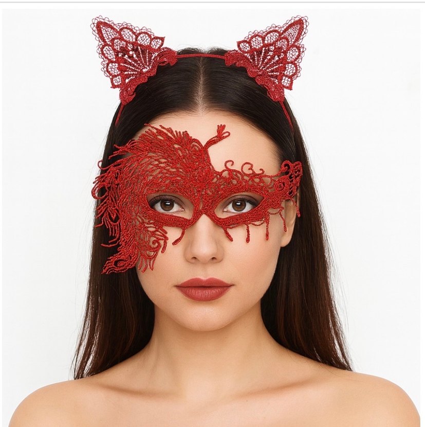 Göz kamaştıran tasarımıyla Alevin Zarafeti Kırmızı Dantel Maske ve Taç Seti, şıklığı ve gizemi bir arada sunar. Özenle işlenmiş tüy desenli kırmızı dantel maske ve kedi kulak detaylı taç, maskeli balo, kına gecesi, festival, doğum günü, sahne gösterileri ve özel davetlerde kusursuz bir görünüm sağlar. Hafif yapısı ve kaliteli dantel işçiliği sayesinde uzun süre rahatlıkla kullanılabilir. Fotoğraf çekimlerinde ve etkinliklerde dikkatleri üzerinize çekecek şık bir tamamlayıcıdır. İnce detaylı kırmızı dantel yarım yüz maskesi, hafif ve şık tasarımıyla özel günlere uygun.