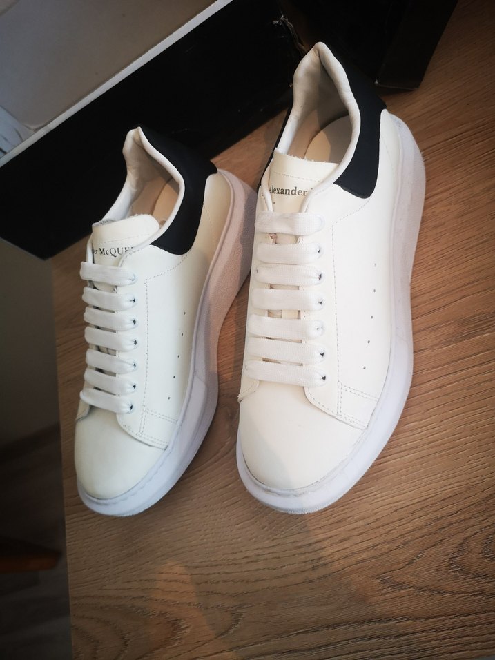 Alexander McQueen erkek spor ayakkabıları beyaz ve siyah detaylarla, kauçuk tabanlıdır. Günlük kullanım için rahat ve şık bir sokak tarzı sunar. ️38 39 mevcut. Depoda kalmaktan ufak tefek toz leke vardır. Temizlenince gider. Fiyat o yüzden uygun yazdım. İçi dışı deri