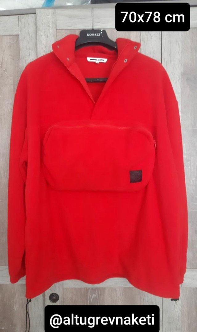 orijinal mcq polar yumusacik ve cok sicak tutan gogsunde buyuk bir cantasi olan model..oversize dir, olculer resimde
