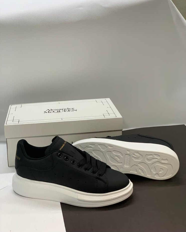Özel Tasarım- Lisanslı- A Kalite Alexander McQueen markalı siyah spor ayakkabılar, baskılı detaylar ve kalın beyaz kauçuk tabanla spor ve şık tarzı bir araya getiriyor.