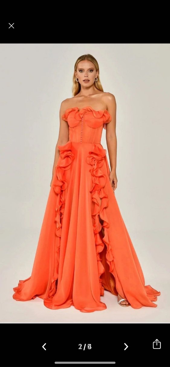 Alfa beta turuncu abiye kız kardesimin kınasında giydim. S/36 beden arkası iplikli. 160 boy 58 kilo ile giydim. Kardesim 160 49 kilo onada oldu iplikli oldugu icin cok kilolu olunmadıgı sürece oluyor. Kuru temizleme yapılıp gönderilecektir. 15000 tl ye aldım. Herkes cok cok begendi elbiseyi çok şık