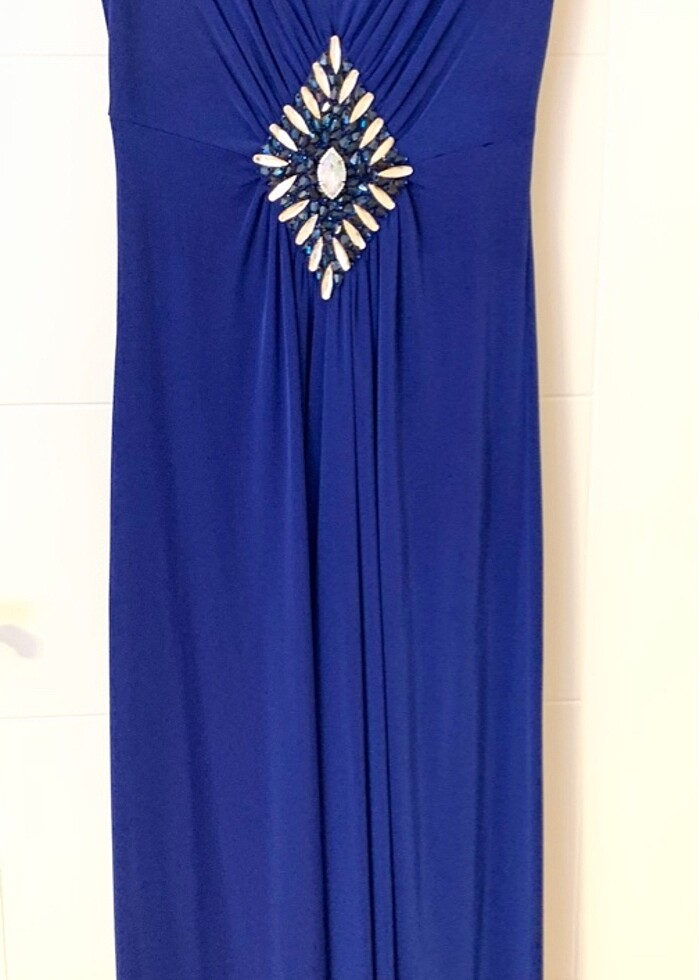 Alfa Beta marka sadece 1 kere giyilmiş saks mavi ön ortada taş detaylı kadın gece elbisesi tuvalet 42/44 beden