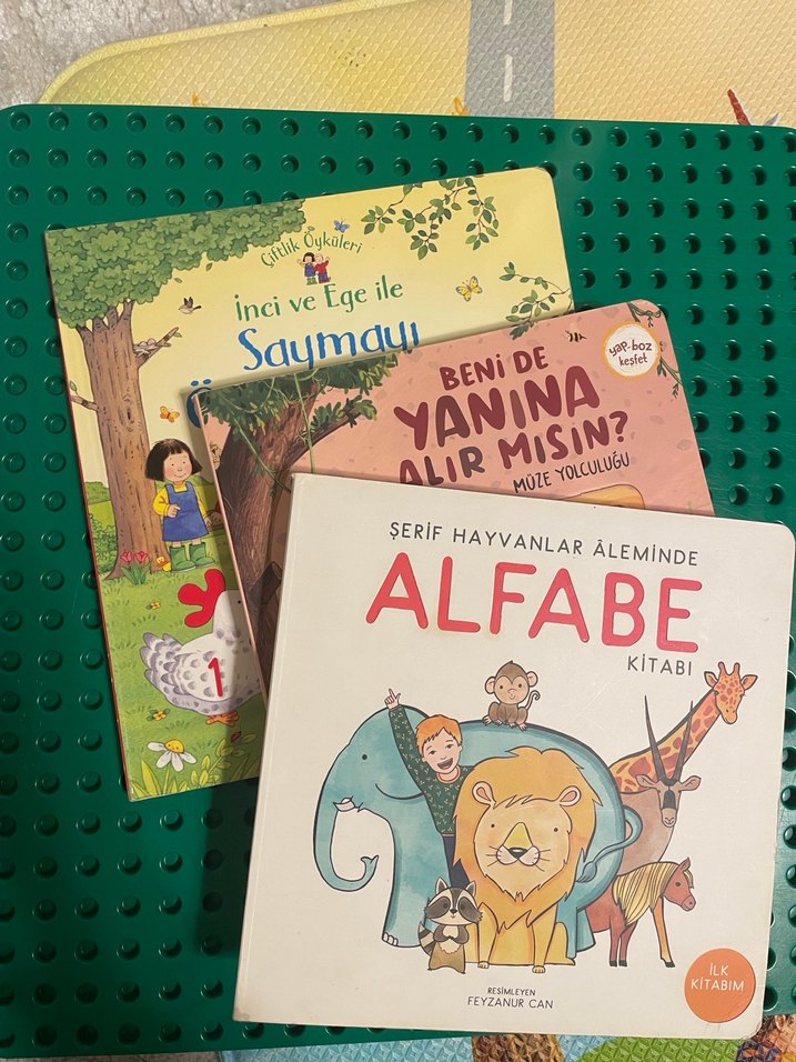 Şerif Hayvanlar aleminde alfabe kitabı, Beni de yanına alır mısın? müze yolculuğu kitabı ve İnci ile Ege ile saymayı öğreniyorum kitabından oluşan çocuklar için üç kitap seti. Tüm kitaplar temiz ve iyi durumdadır. Yırtık yoktur. Beni de yanına alır mısın? kitabının kapağında ufak bir hasar var, İnci ve ege ile saymayı öğreniyorum kitabının kapak kenarı çok az kalkmış. Hepsi ciltli kalın sayfa.