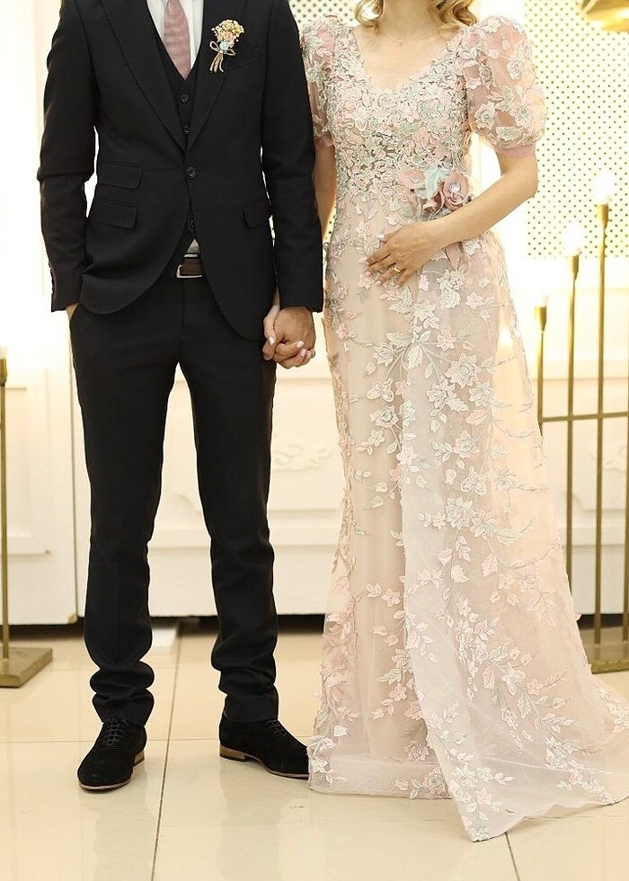 Elbise Kadın abiye Pudra-mint 1 kez giyildi , kuru temizleme yapıldı