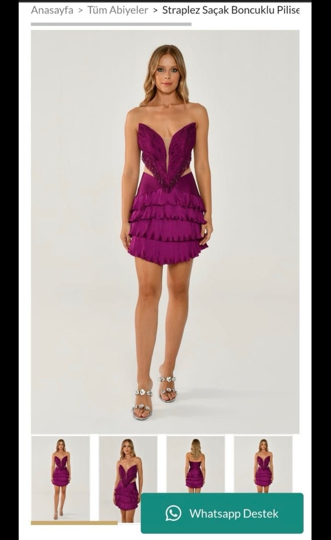 Alfabeta viral abiye, mor renk sırtı fermuar kapamalı, 40 beden fakat kalıbı dardır 38 bedene de uygundur. hiçbir deformesi yoktur.