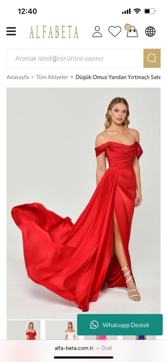 Düşük omuz, yırtmaçlı, orijinal alfabeta abiye. Sadece 1 kez kullanıldı, sorunsuz. kalıbı biraz dar 42-44 bedene uyar.