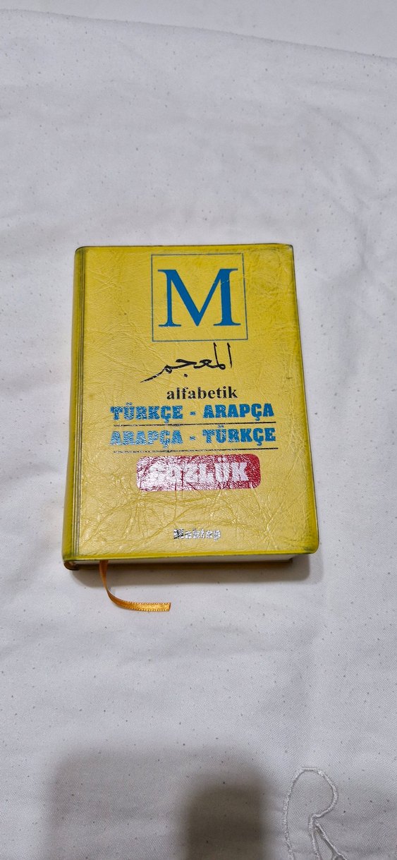 Sarı kapaklı, ayraç kurdelalı alfabetik Türkçe-Arapça ve Arapça-Türkçe sözlüktür.