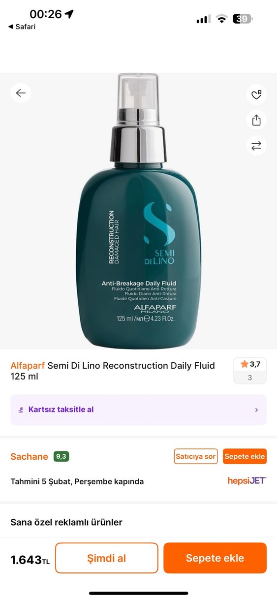 Yarısı doludur. Alfaparf Semi Di Lino Onarıcı Günlük Saç Sıvısı, zarar görmüş saçlar için 125 ml günlük kırılma önleyici bakım sağlar. Saçı korur ve onarır.