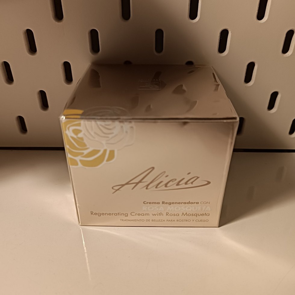 Alicia, gül yağı içeren yenileyici krem, yüz ve boyun bakımı için.
