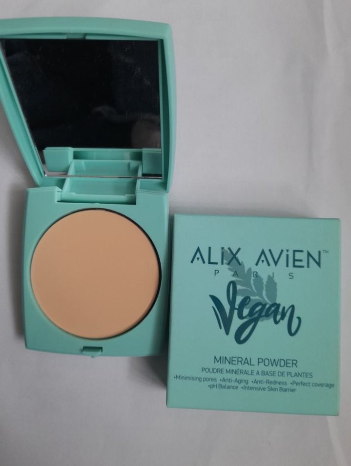 Bitkisel içerikli bej vegan mineral pudra, gözenekleri küçültür, yaşlanma karşıtı ve kızarıklık giderici özelliklere sahiptir. Orijinaldir, hiç kullanılmamıştır.