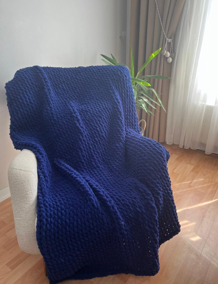 Lacivert renkte, yumuşak ve rahat örgü tek kişilik battaniye Düz ve koyu renkli tasarımıyla sıcaklık sağlar. 120×180 ölçülerinde