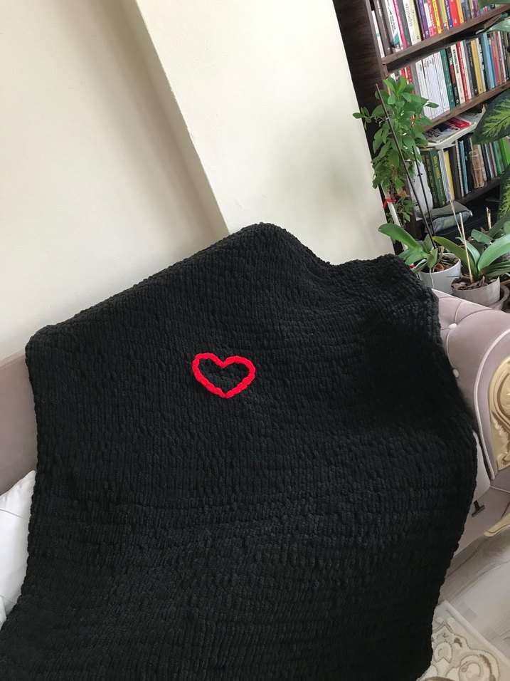 Nakışlı kırmızı kalp detaylı siyah havlu, sokak stilini yumuşak ve emici kumaşla buluşturuyor. ❤️