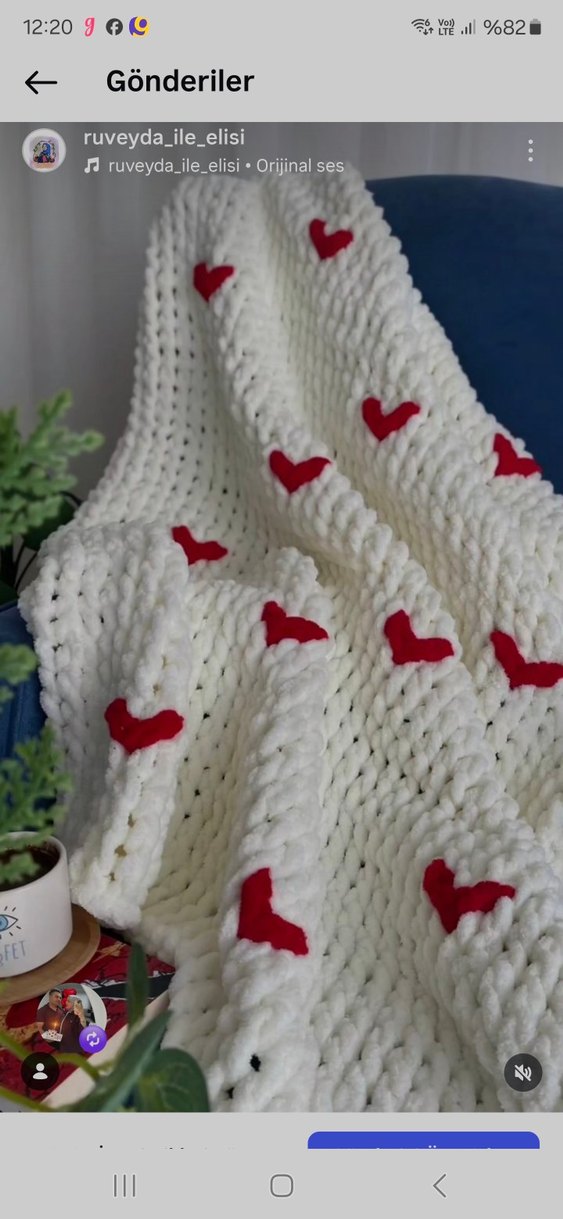 Yumuşak dokulu beyaz battaniye, renkli nakışlı kalp desenleriyle sıcaklık sağlar. ❤️