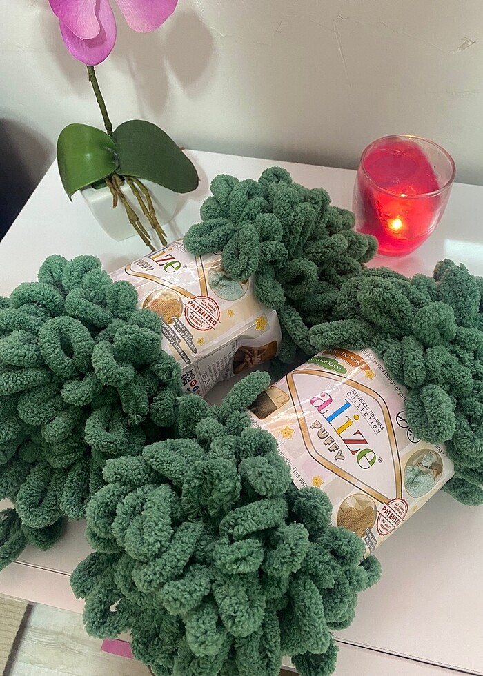 Battaniye,atkı,yastık vb ürünler için puffy örgü ipi 2 adettir.Tanesi 60₺