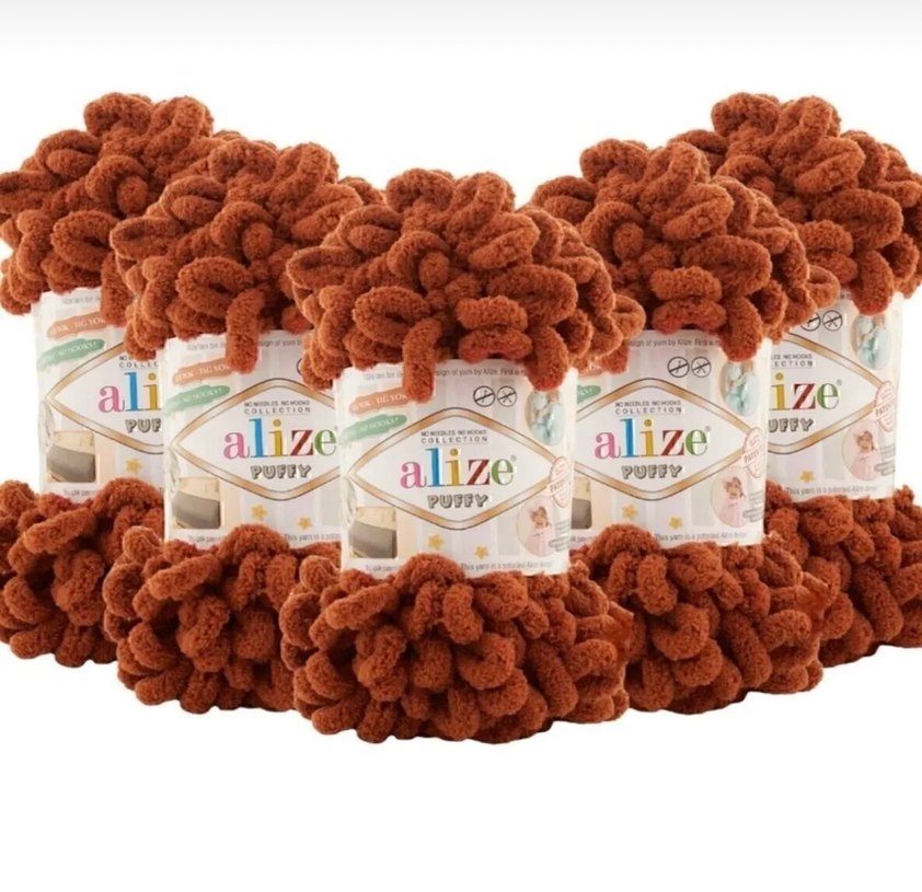 Alize Puffy renkli tarçın , yumuşak ve halkalı dokulu peluş iplik, el işi projeleri için uygundur . 15 adet