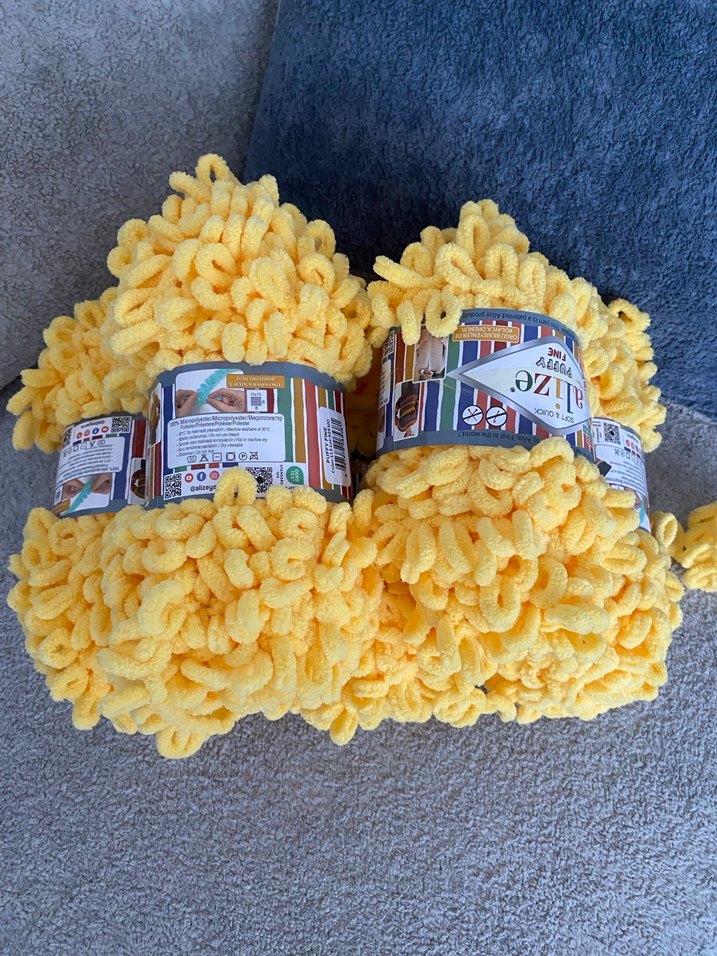 Alize Puffy Fine sarı ip, yumuşak ve kabarık dokusu ile rahat dokuma projeleri için uygundur. 5 adet