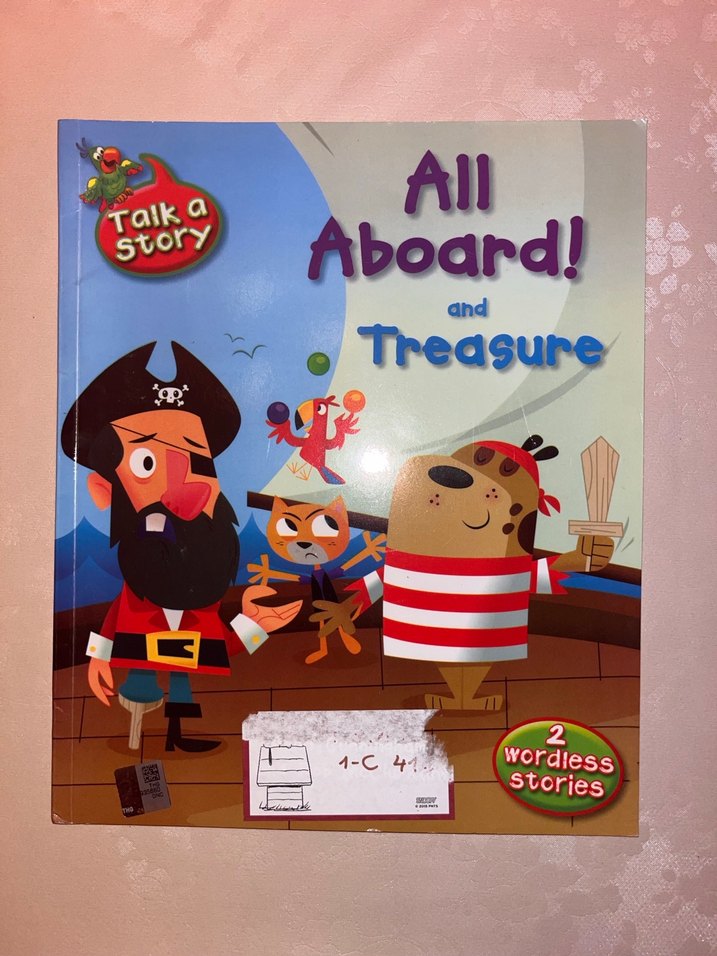 "All Aboard! and Treasure" adlı iki kelimesiz hikaye içerir ve renkli korsan karakterleriyle doludur. Talk a Story serisine aittir. İlk okul seviyesinde, İngilizce basit cümlelerle ifade edilmeye uygundur. 15 Sayfa Kapakta etiket bulunuyor. Bunun dışında, tertemiz, yepyeni