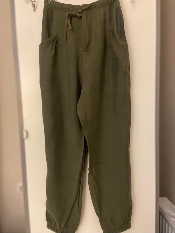 All saints haki beli lastikli cepli şık şifon pantolon bel : 36 uzunluk:97 ipek görünümlü şık .#allsaints#allsaintspantolon için kemerli, cepli, ipek kumaştan, bol kesim haki pantolon. Günlük kullanım için rahat midi uzunlukta, sokak stiline uygun.
