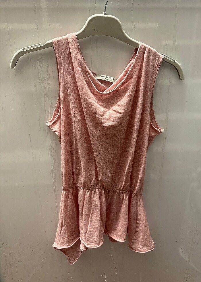 Açık bebek pembesi, belde ince lastik, alt detay tek taraf daha uzun bir etek gibi bitişi var, trk taraf 45c diger taraf 6 cm’de biter. Az giydim