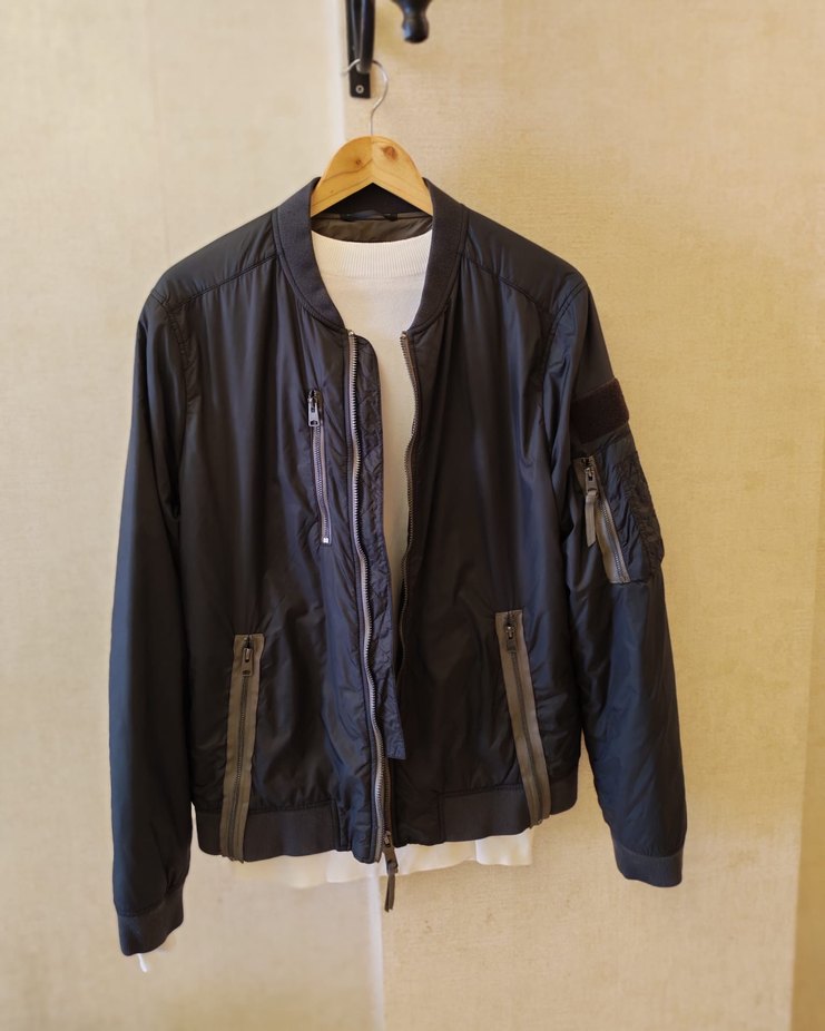 %100 orjinal All Saints Marka Siyah renkte, rahat kesim, bisiklet yaka ve uzun kollu erkek ceketi. Fermuarlı cepler ve ön fermuar bulunur, kusursuz sorunsuz yepyeni..Xl beden